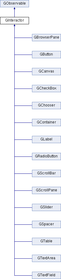 Implemented in GCanvas, GContainer, GTable, GTextArea, GSlider, GTextField, GBrowserPane, GChooser, GLabel, GButton, GScrollBar, GRadioButton, GScrollPane, GCheckBox, and GSpacer.